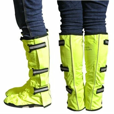 Dotées d’une large ouverture, ces sur-chaussures s’enfilent facilement à partir de vos pieds. Une attache située en dessous de vos chaussures permet aux Leggits de rester stables. Ces derniers se referment efficacement à l’aide de velcros et de languettes lumineuses sur le côté extérieur de votre jambe.