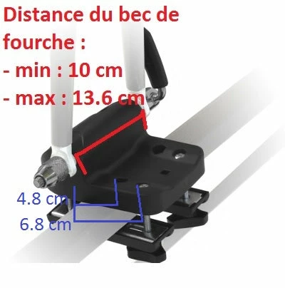 Ce porte vélo de toit est compatible avec tous les types de vélos d’adultes et vélos à freins à disques. La fixation du vélo se fait sur la fourche et possède des sangles de sécurité. Il est fabriqué en plastique et peut supporter jusqu’à 15 kg. La largeur maximale de ce porte vélo est de 70 mm. Aucun outil n’est nécessaire pour le montage.